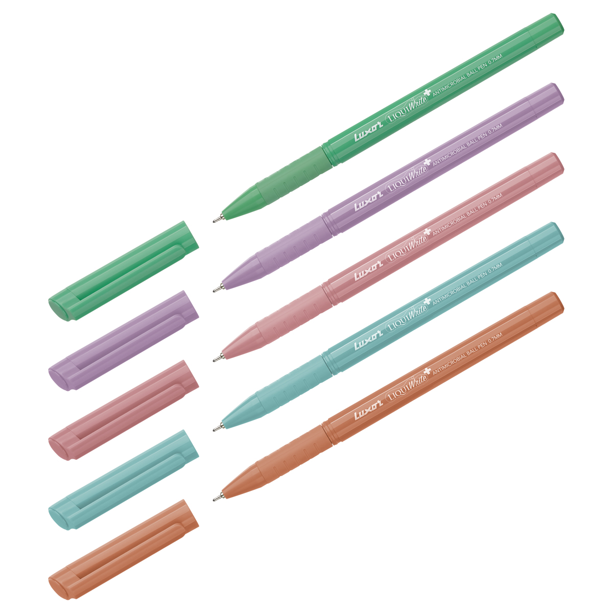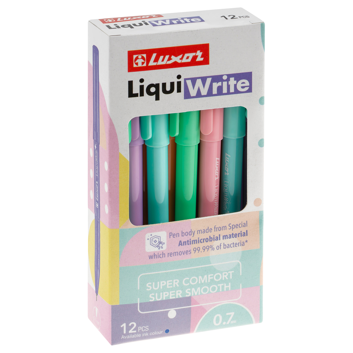 Ручка шариковая Luxor "Liquiwrite" синяя, 0,7мм, с антибактериальным грипом, корпус ассорти 19410N/12BX