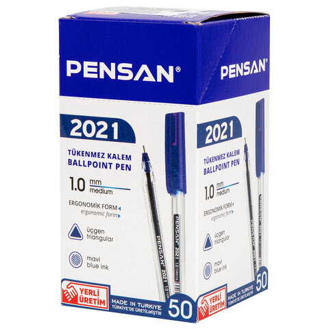 Ручка шариковая масляная PENSAN 2021, СИНЯЯ, трехгранная, узел 1 мм, линия письма 0,8 мм, 2021/S50 2021/S50