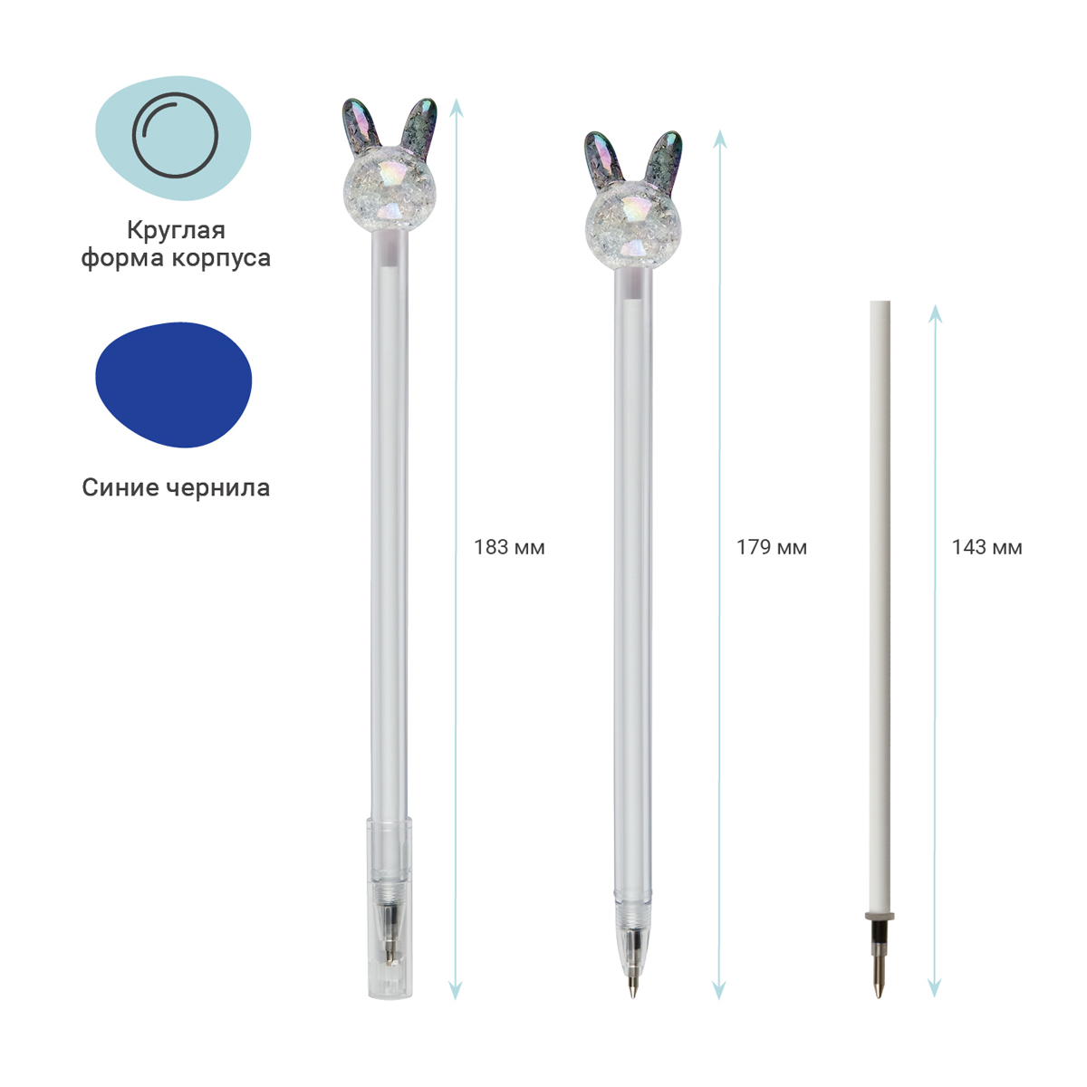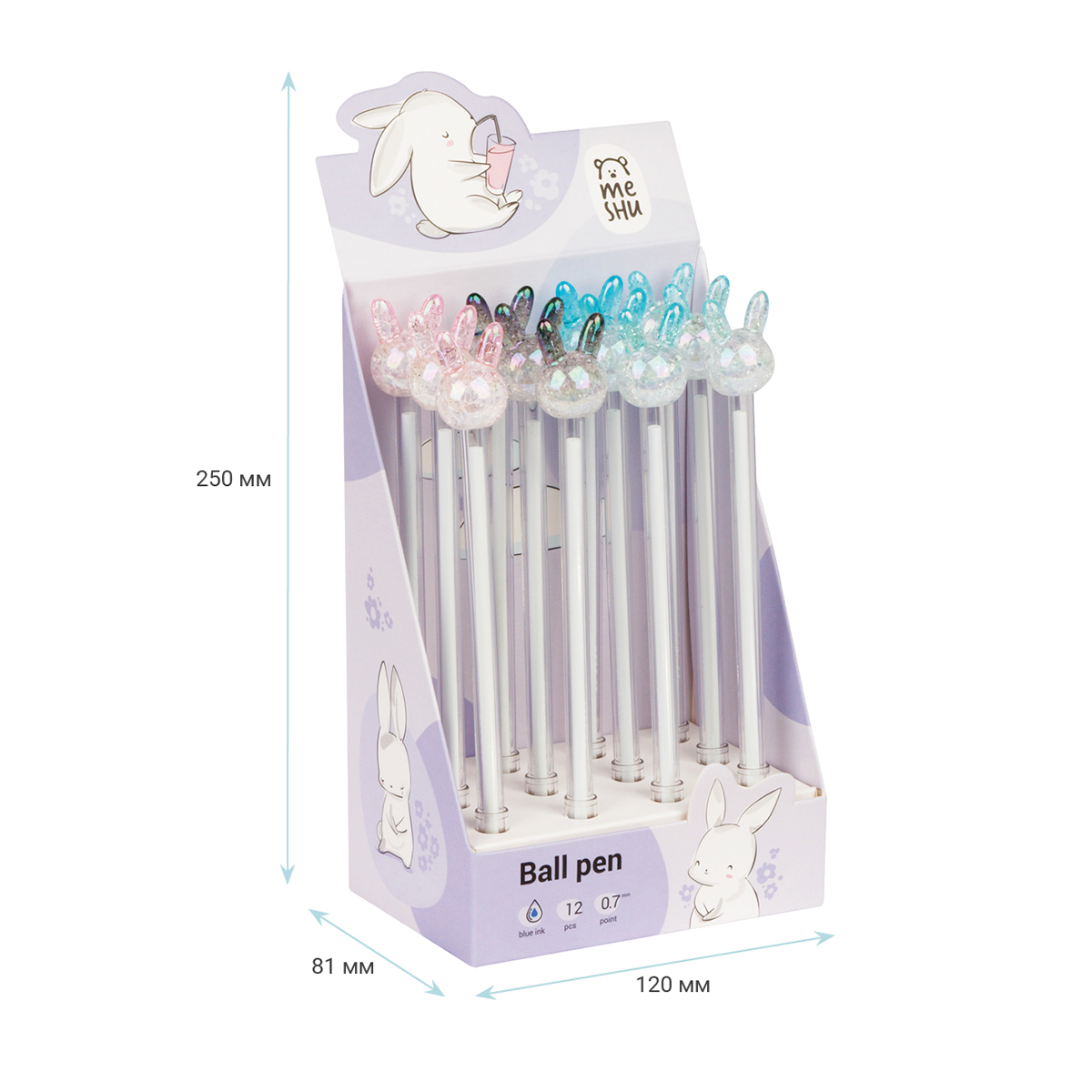 Ручка шариковая MESHU "Crystal Rabbit", синяя, 0,7мм, корпус ассорти MS_02897