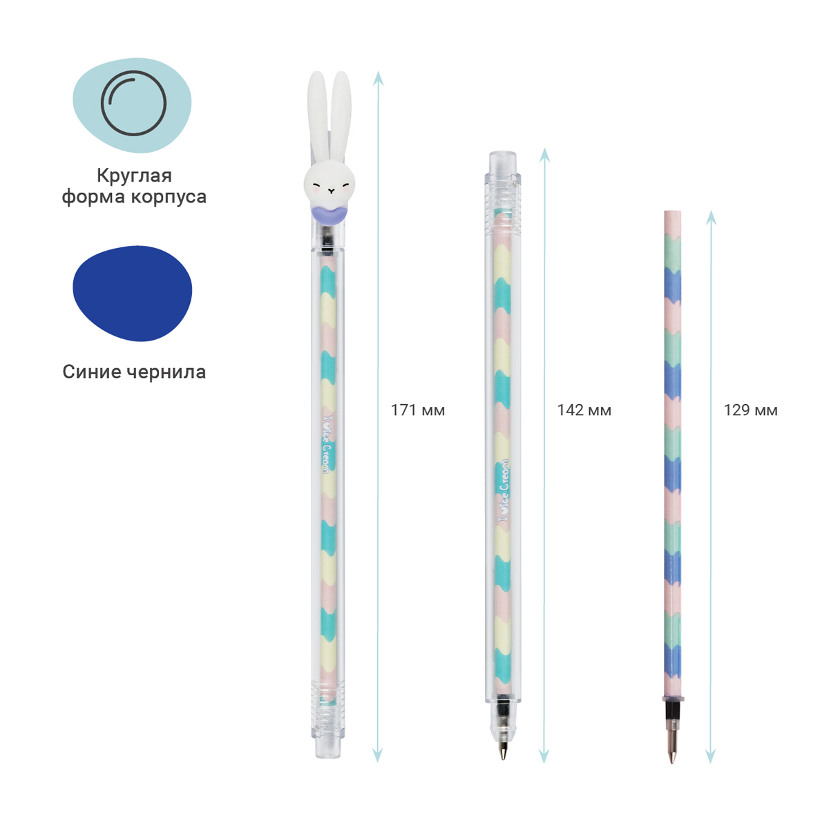 Ручка шариковая MESHU "Ice Cream Rabbit ", синяя, 0,7мм, корпус ассорти MS_02873