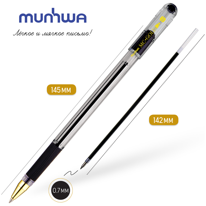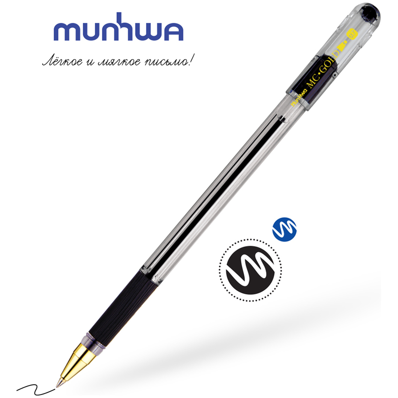 Ручка шариковая MunHwa "MC Gold" черная, 0,7мм, грип, штрих-код BMC07-01