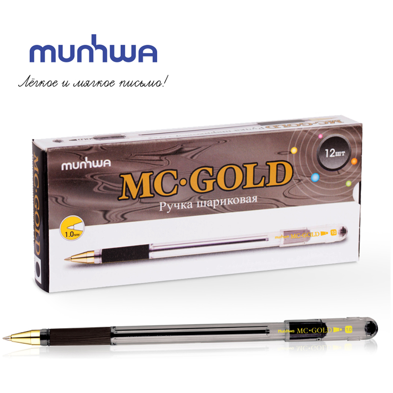 Ручка шариковая MunHwa "MC Gold" черная, 1,0мм, грип, штрих-код (BMC10-01)