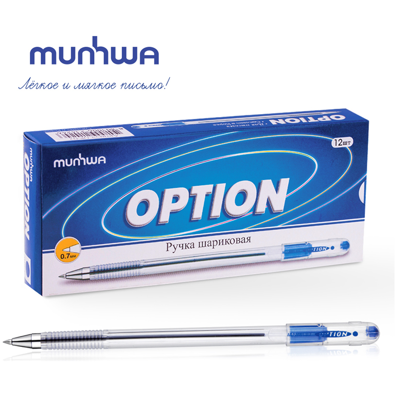 Ручка шариковая MunHwa "Option" синяя, 0,7мм, штрих-код OP07-02