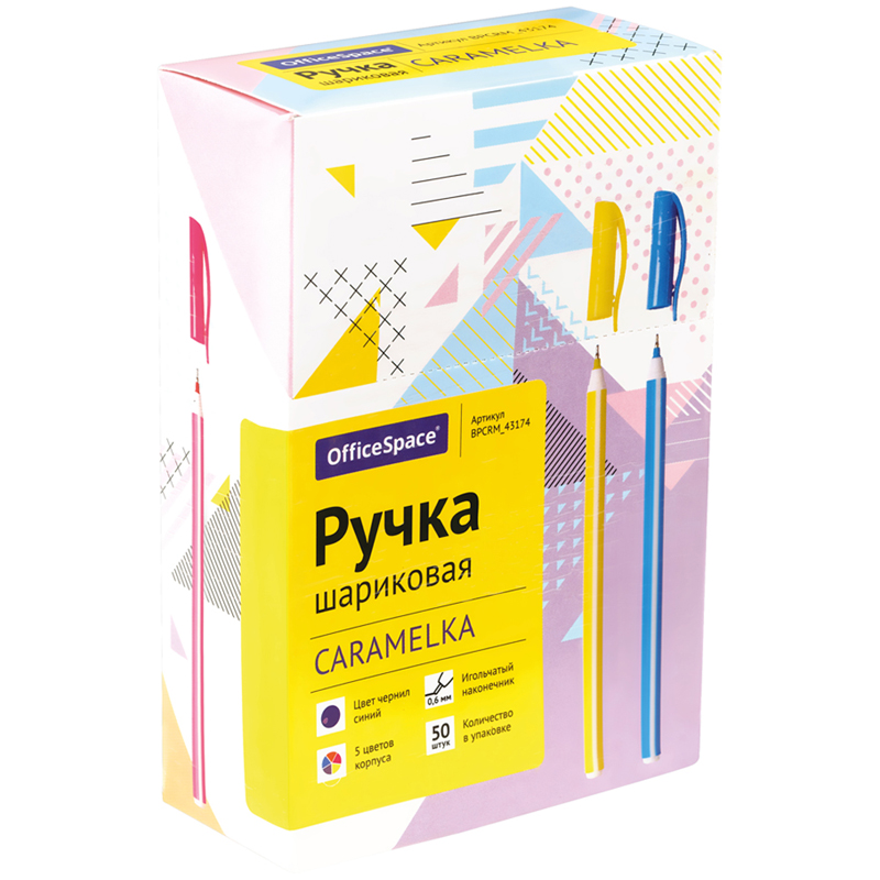 Ручка шариковая OfficeSpace "Caramelka"синяя, 0,6мм, на масляной основе, штрих-код BPCRM_43174