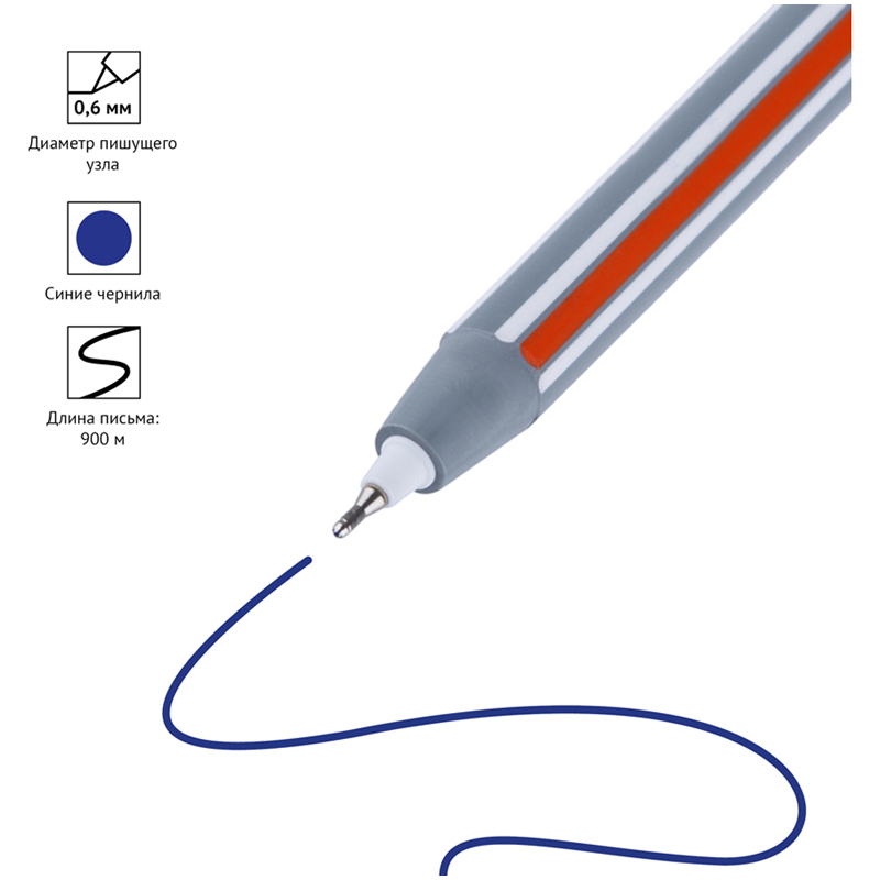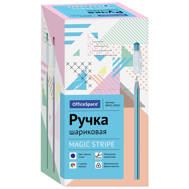 Ручка шариковая OfficeSpace "Magic stripe" синяя, 0,6мм, трехгранная, на масляной основе, штрих-код BPMS_43020
