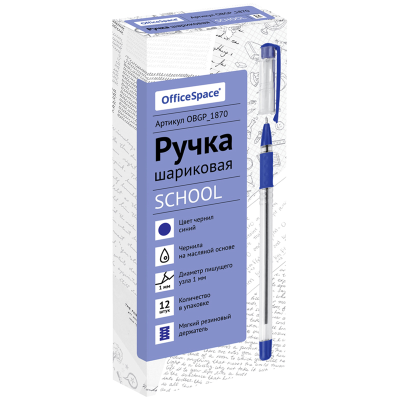 Ручка шариковая OfficeSpace "School" синяя, 1,0мм, грип, на масляной основе OBGP_1870