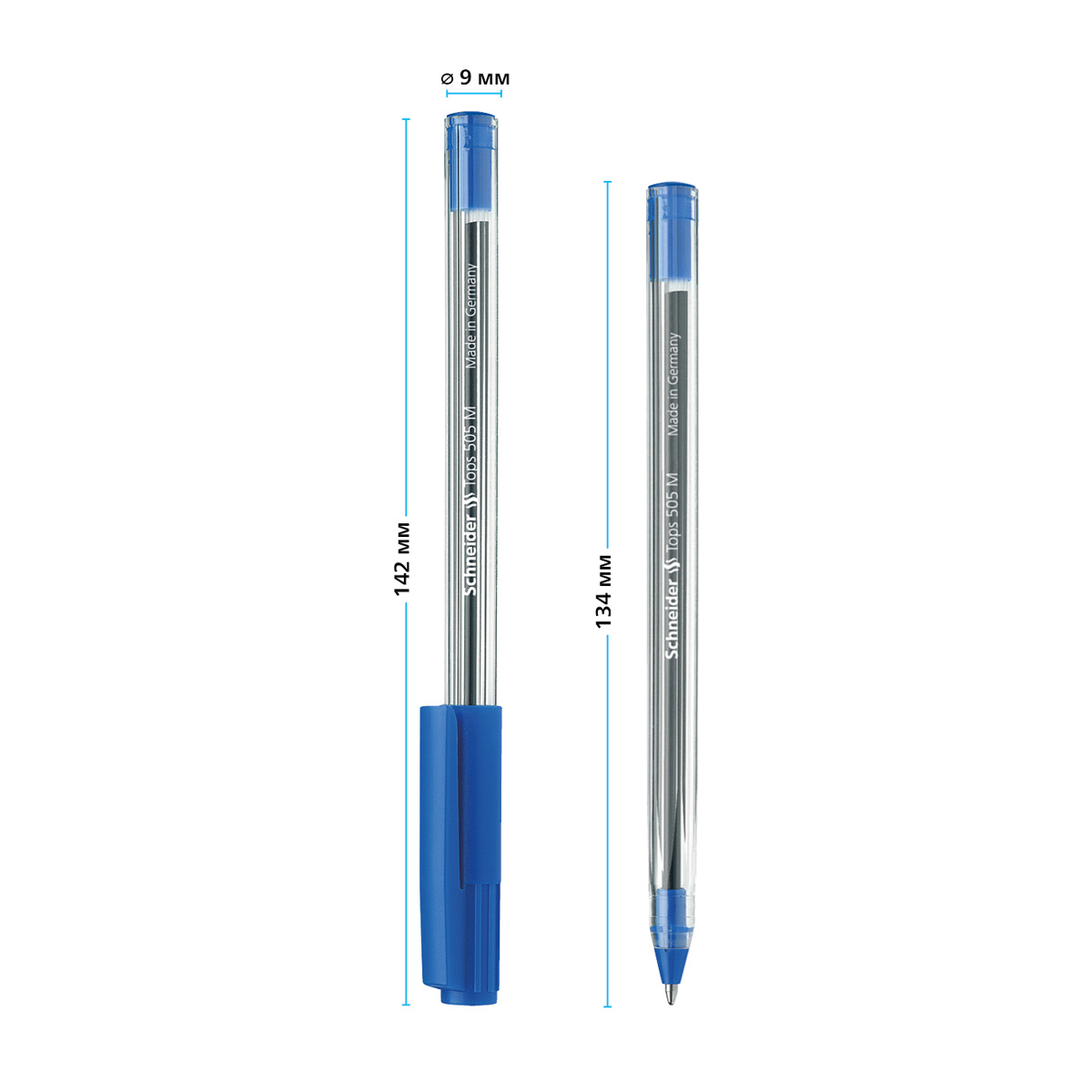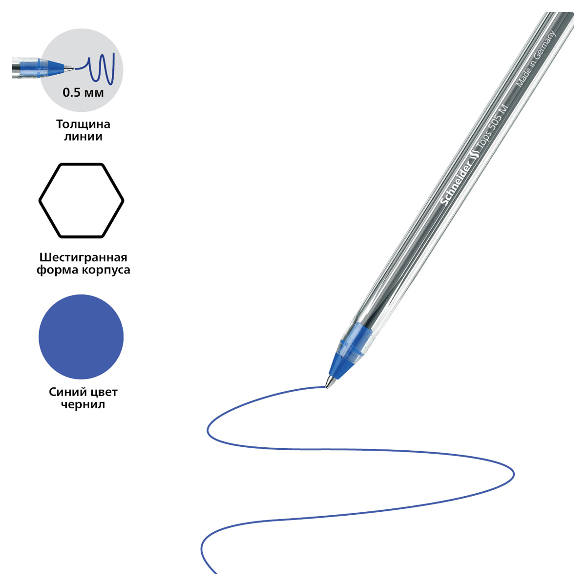 Ручка шариковая Schneider "Tops 505 M" синяя, 1,0мм, прозрачный корпус 150803