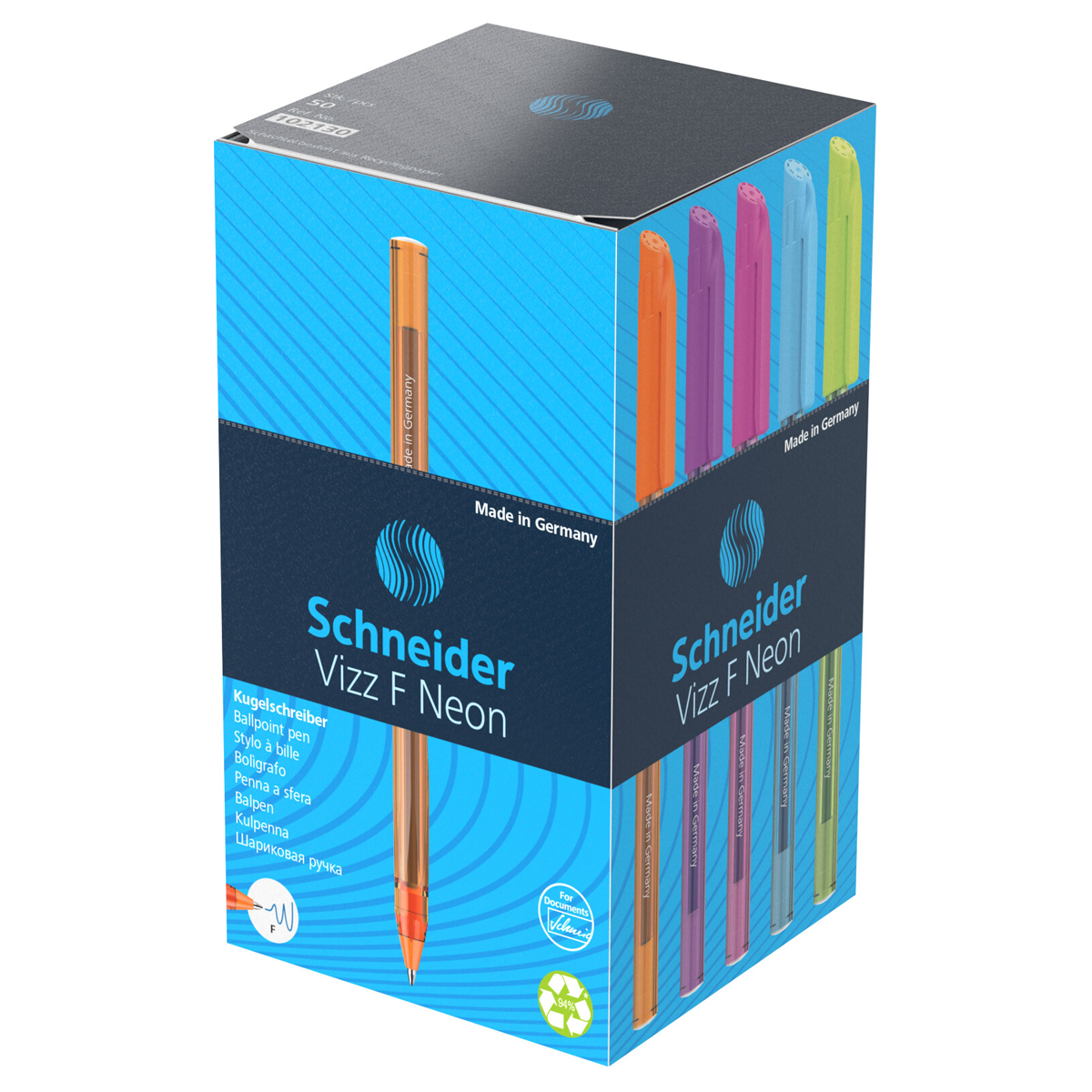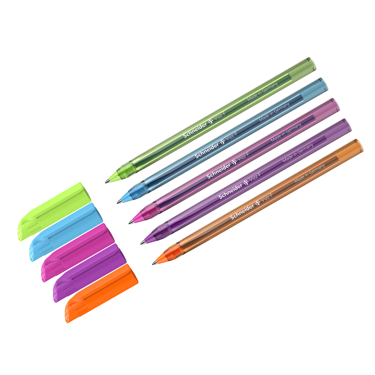 Ручка шариковая Schneider "Vizz F Neon" синяя, 0,8мм, прозрачный корпус неон ассорти 102130