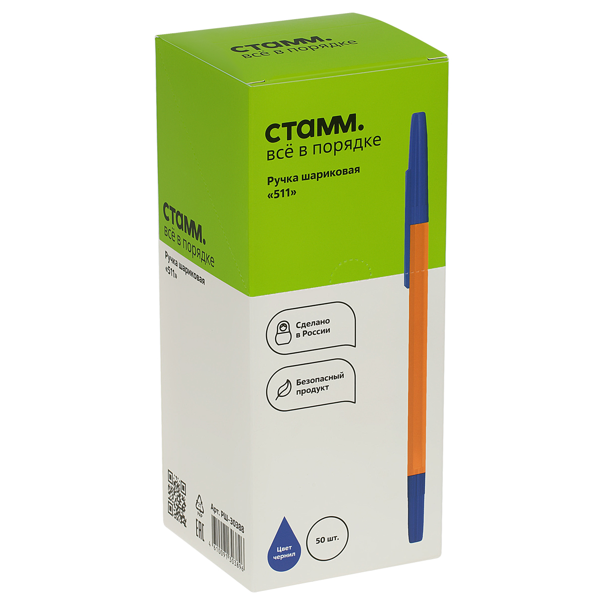 Ручка шариковая СТАММ "511" синяя, 0,7мм, оранжевый корпус РШ-30388