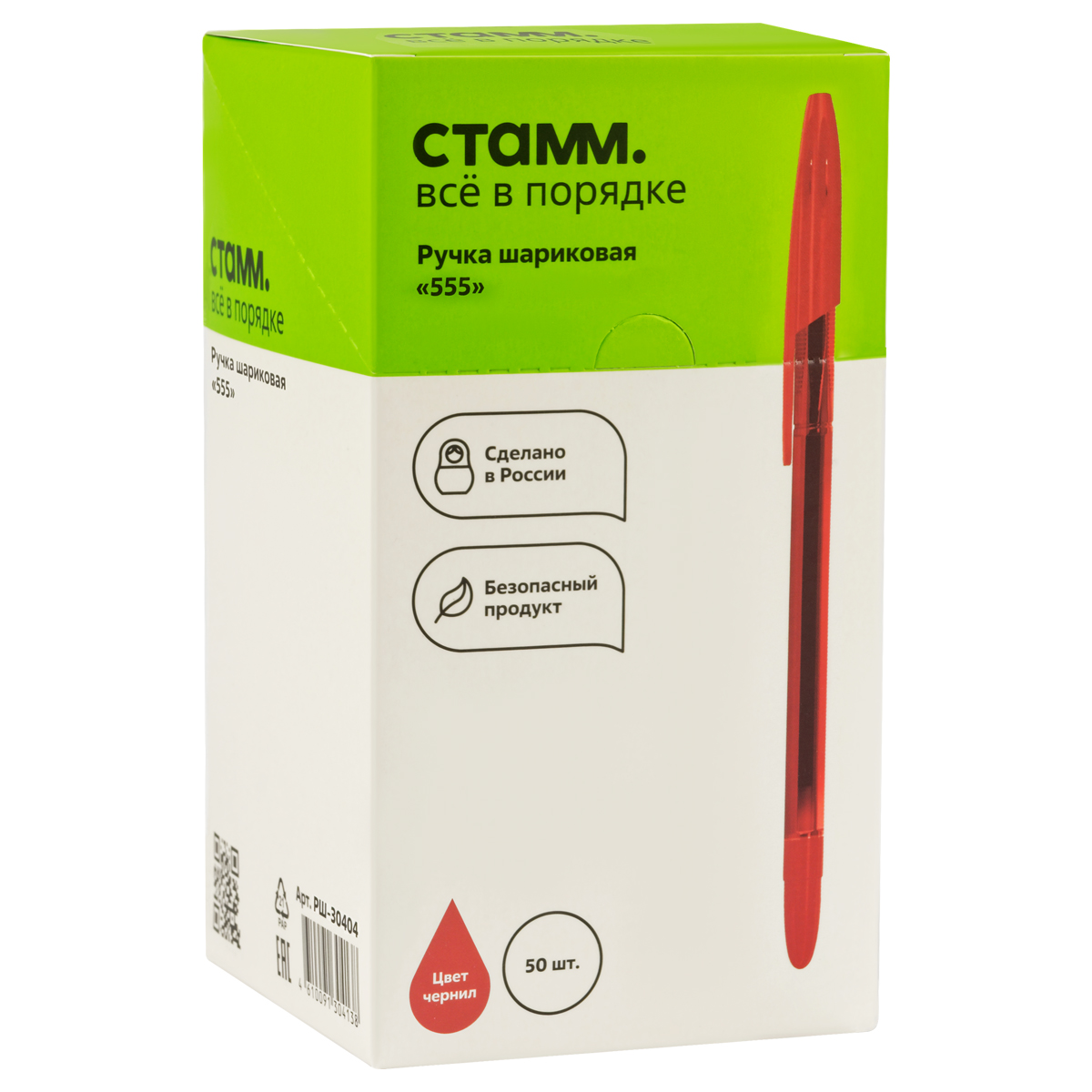 Ручка шариковая СТАММ "555" красная, 0,7мм, тонированный корпус РШ-30404
