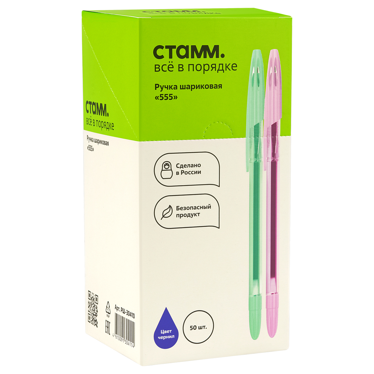Ручка шариковая СТАММ "555" синяя, 0,7мм, пастель микс РШ-30410