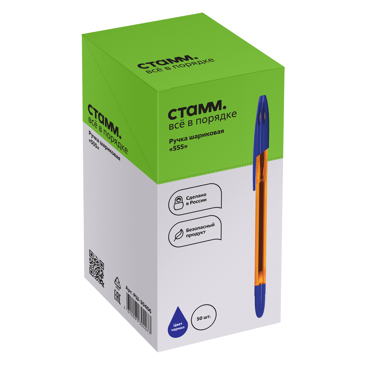 Ручка шариковая СТАММ "555" синяя, 0,7мм, тонированный оранжевый корпус РШ-30406