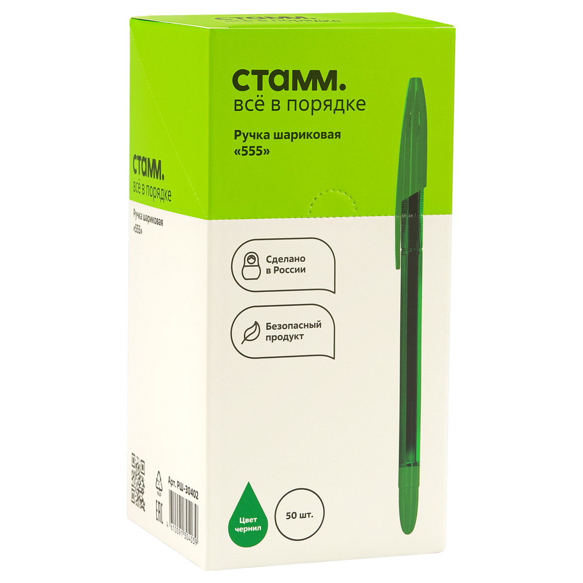 Ручка шариковая СТАММ "555" зеленая, 0,7мм, тонированный корпус РШ-30402