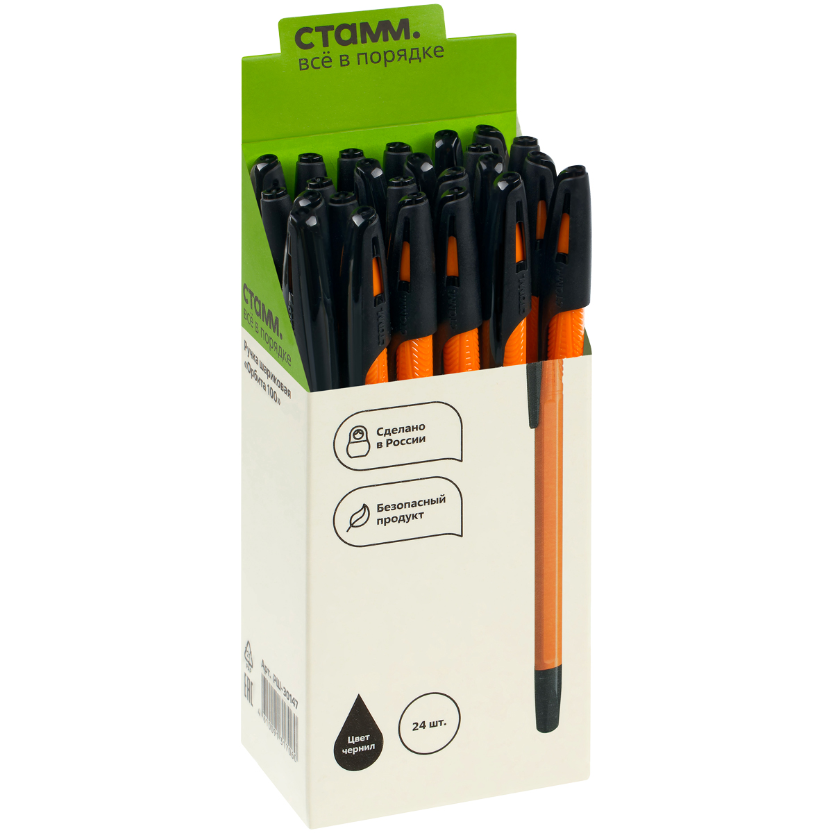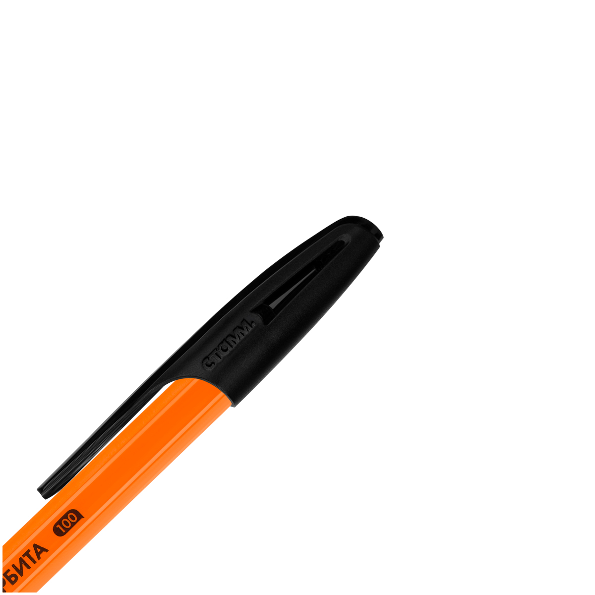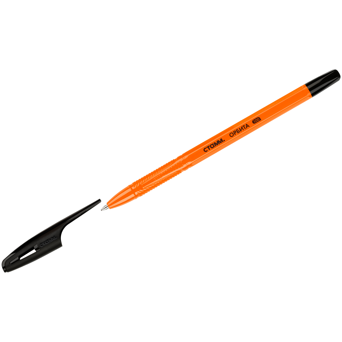 Ручка шариковая СТАММ "Орбита 100" черная, 0,7мм, оранжевый корпус РШ-30147