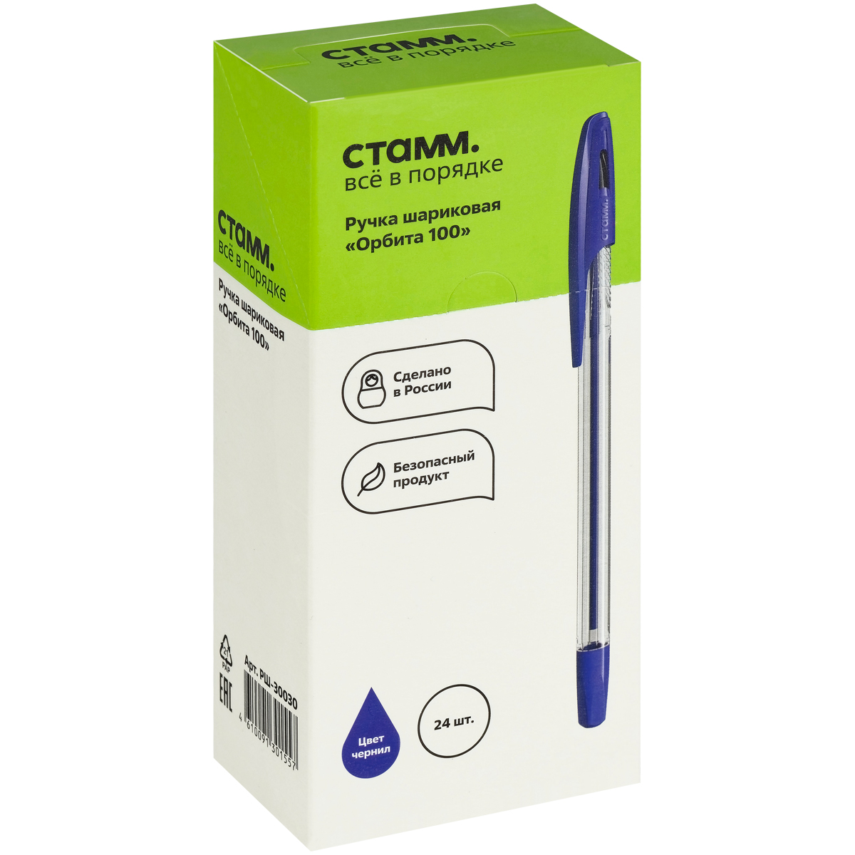 Ручка шариковая СТАММ "Орбита 100" синяя, 0,7мм РШ-30030