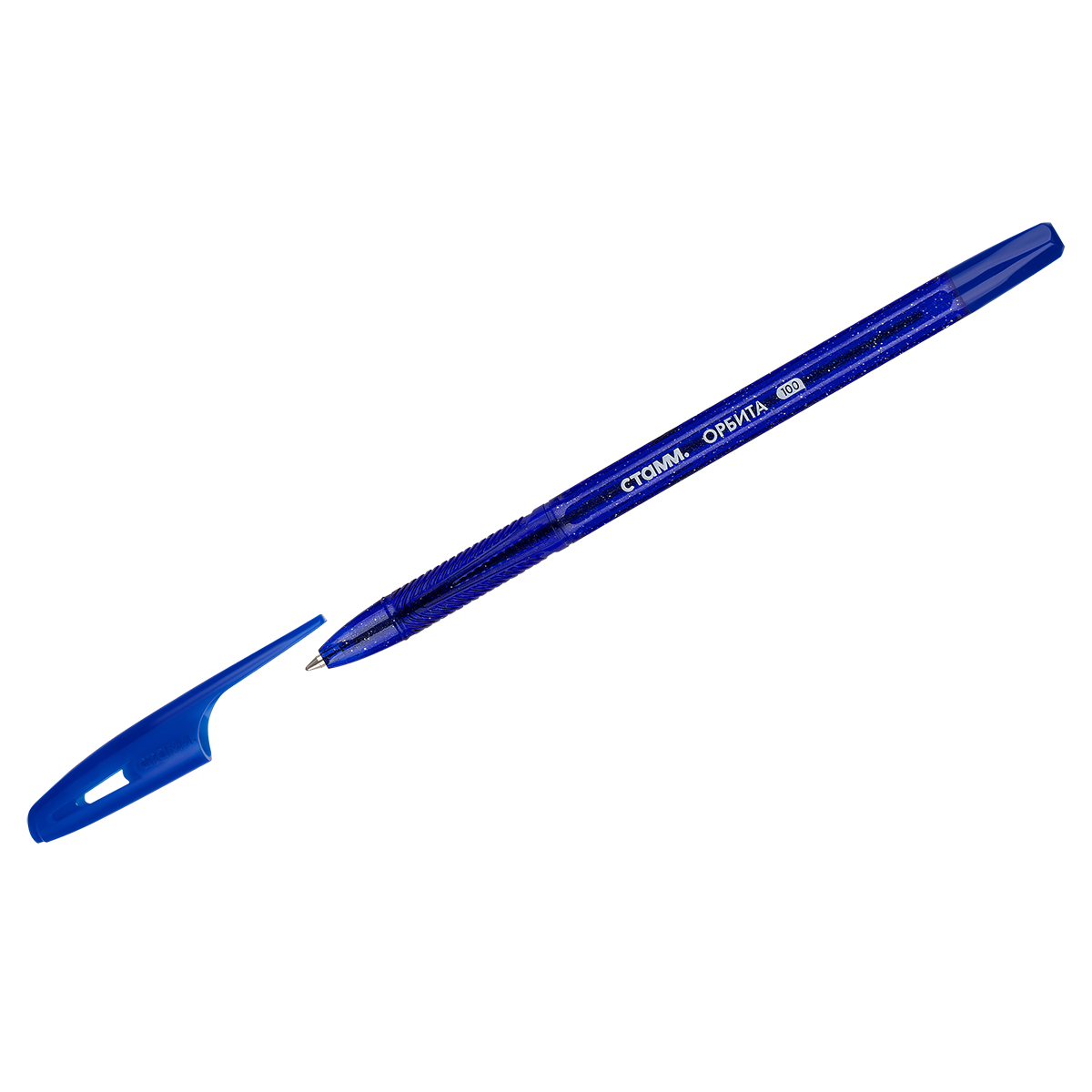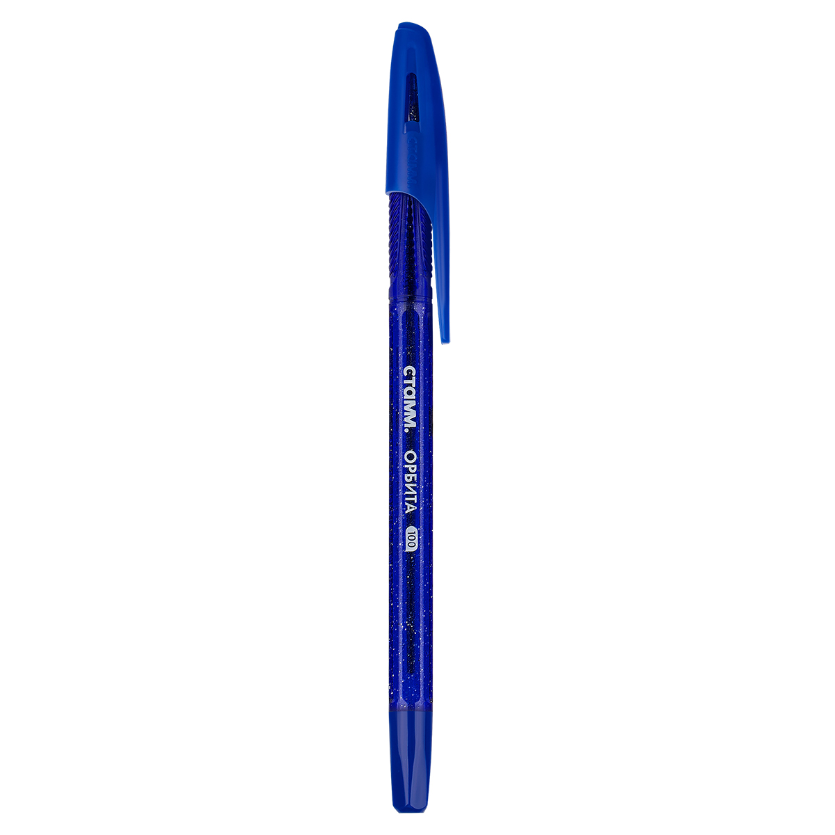 Ручка шариковая СТАММ "Орбита 100" синяя, 0,7мм, тонированный корпус с блёстками РШ-32389