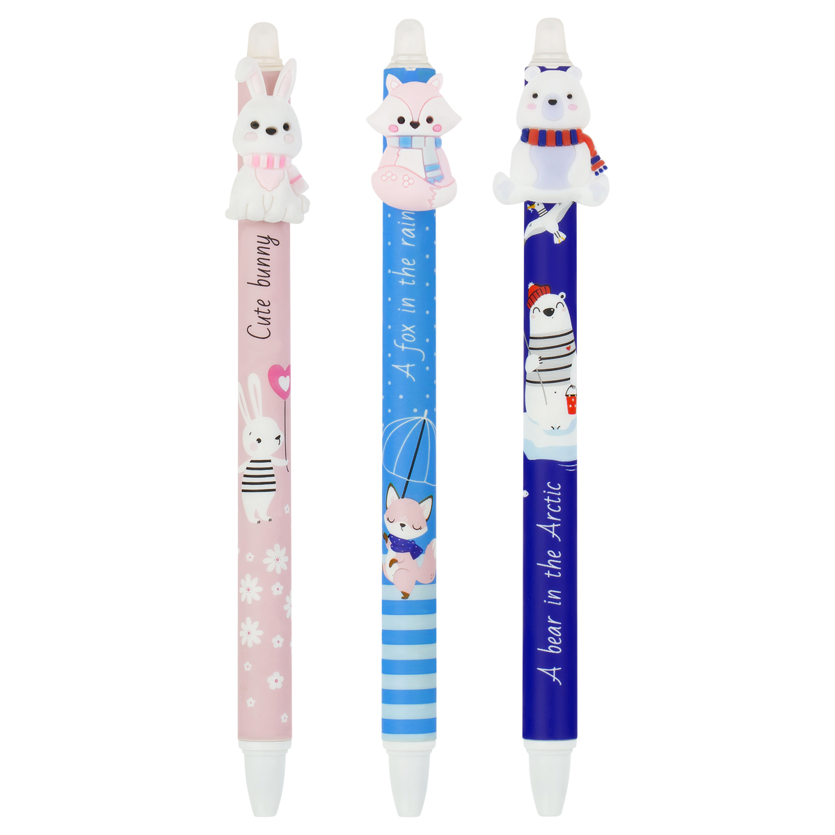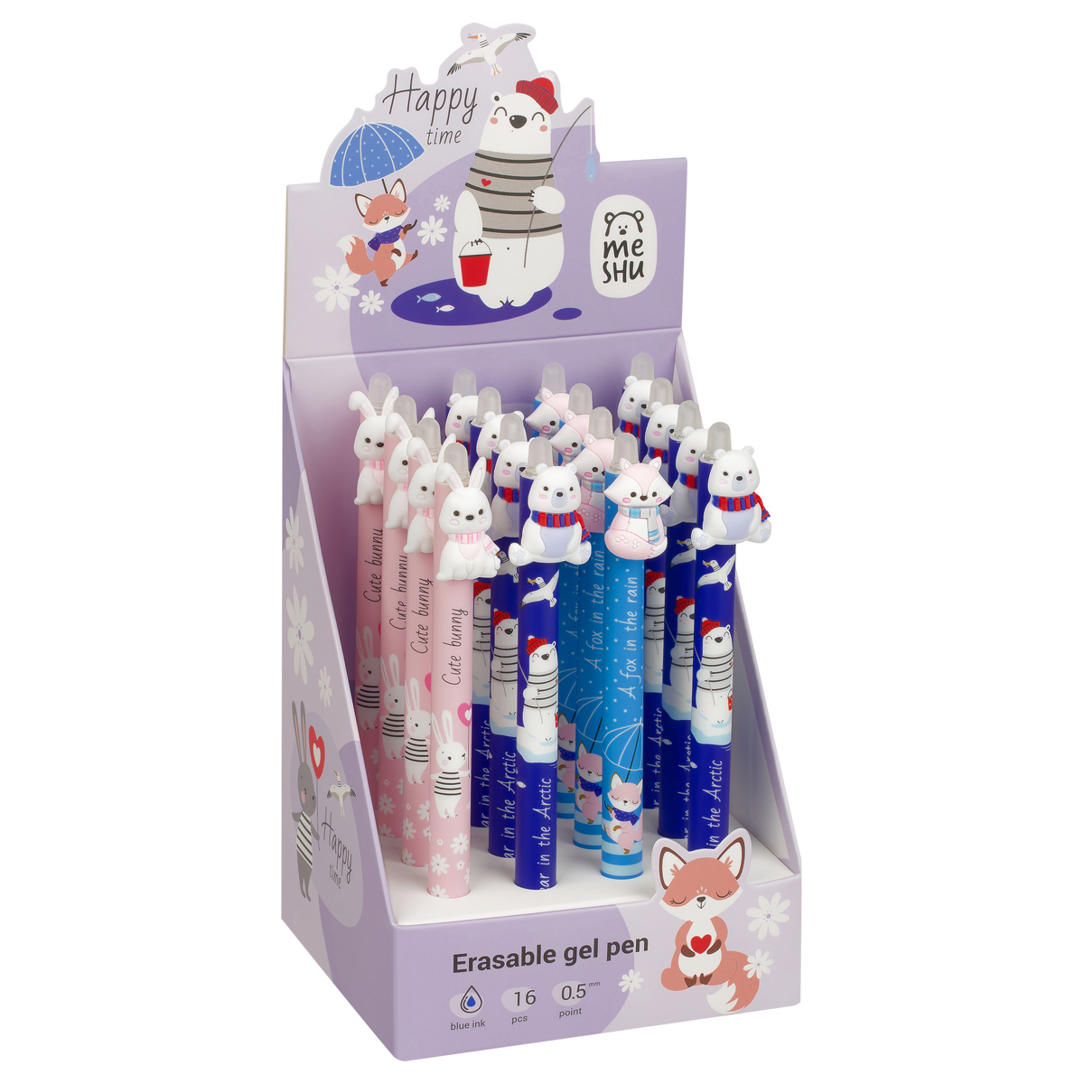 Ручка гелевая стираемая автоматическая MESHU "Funny friends" синяя, 0,5мм, корпус ассорти, с топпером MS_55647