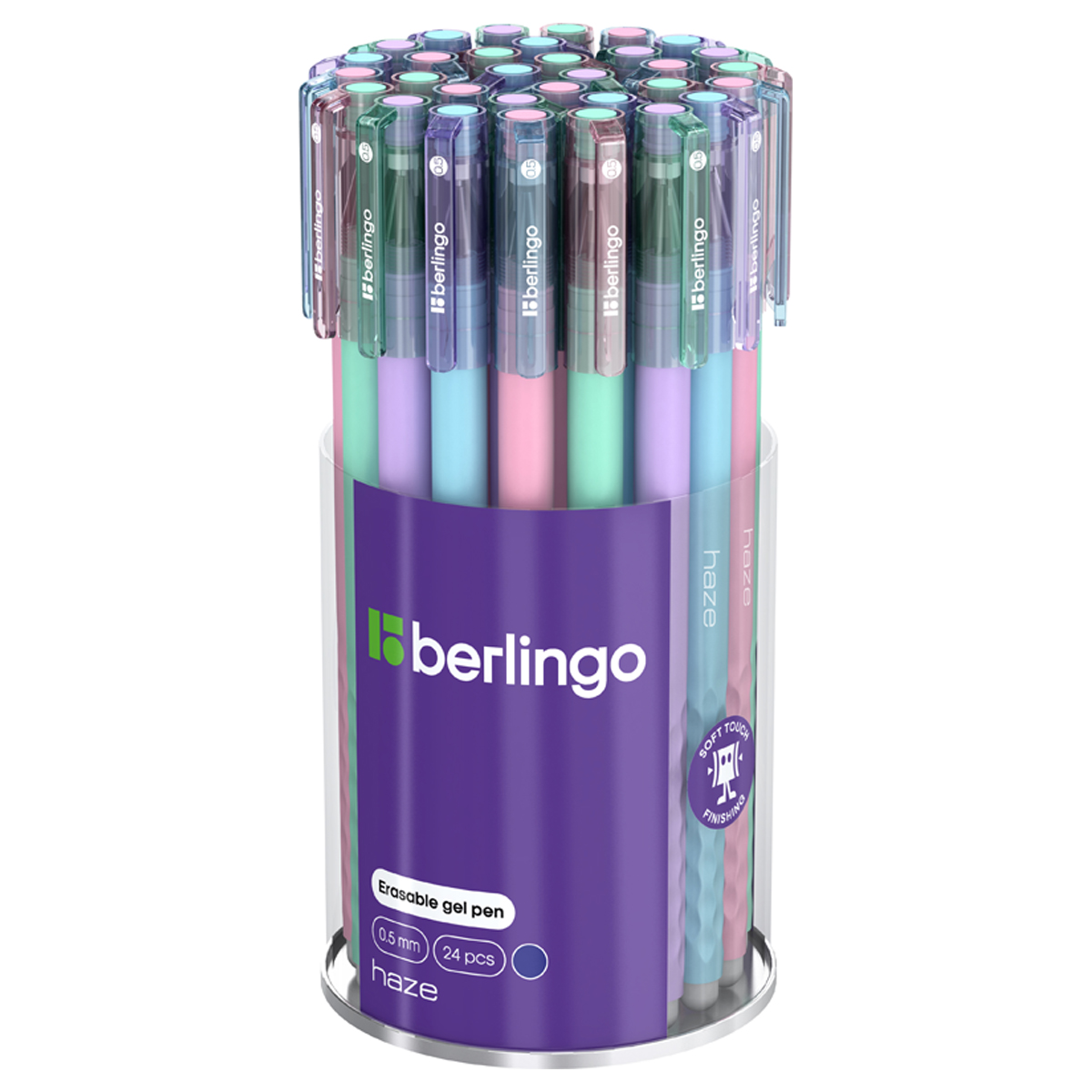 Ручка гелевая стираемая Berlingo "Haze" синяя, 0,5мм, прорезин. корпус, корпус ассорти CGp_50214