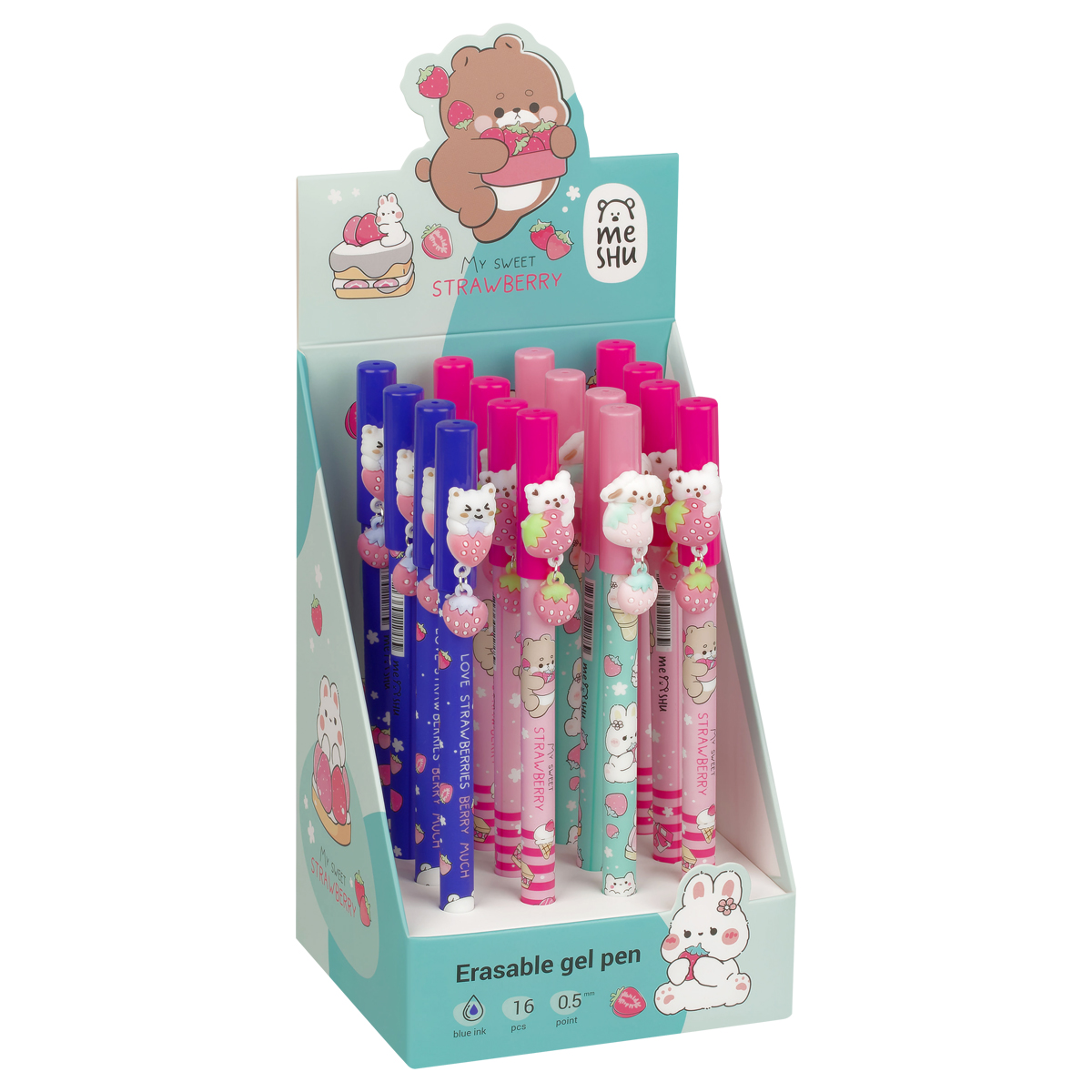 Ручка гелевая стираемая MESHU "Friendsberry" синяя, 0,5мм, корпус ассорти, с топпером MS_55631
