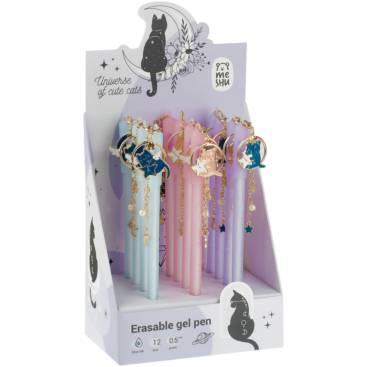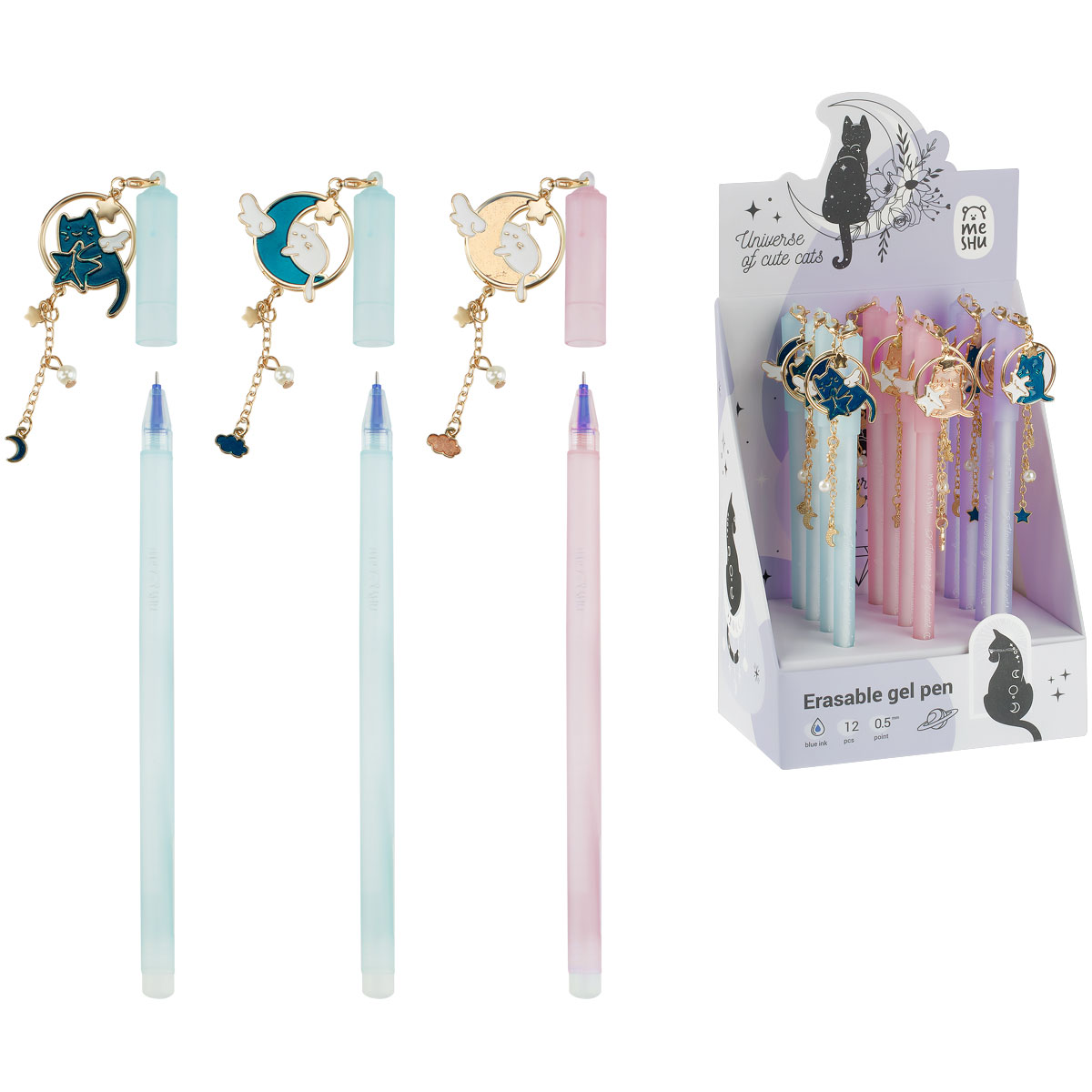 Ручка гелевая стираемая MESHU "Grace cats" синяя, 0,5мм, корпус ассорти, с топпером MS_62842