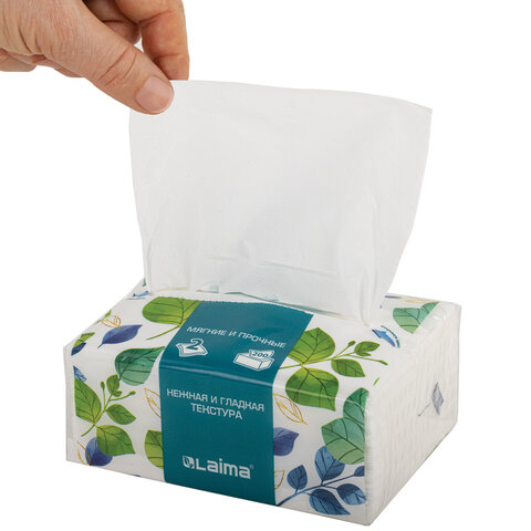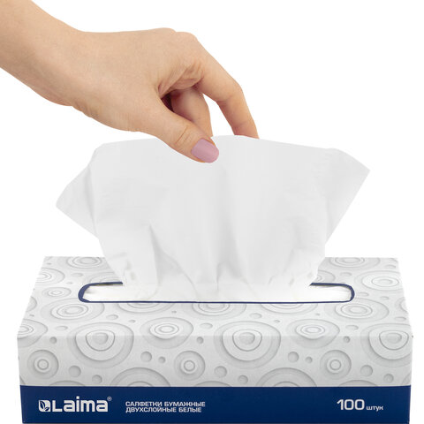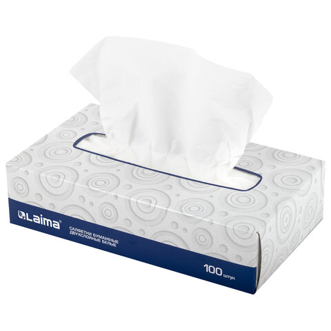 Салфетки в картонном боксе LAIMA практичны в применении. Их можно использовать не только дома, но и в офисе, на работе или взять с собой в дорогу. Предназначены для личной гигиены. В одной пачке 100 двухслойных салфеток белого цвета. Размер: 200 х 200 мм.